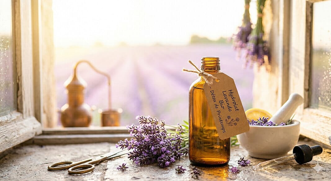 Et si la réponse venait directement des champs de lavande ? L’hydrolat de lavande bio, aussi appelé eau florale, sort de la même distillation que l’huile essentielle, mais dans une concentration bien plus faible. Résultat : on peut l’appliquer directement sur la peau, y compris sur les paupières et les zones les plus réactives. En compresse sur les yeux gonflés ou en soin sur les zones irritées par le pollen, c’est l’un des gestes les plus simples de la saison.